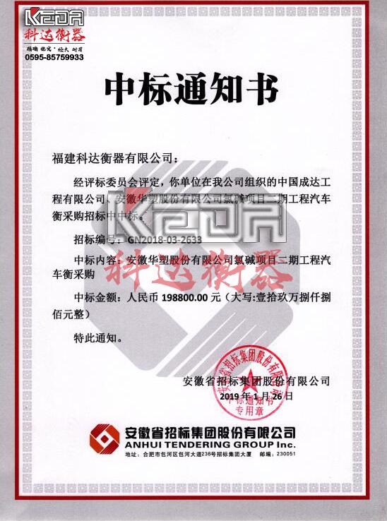熱烈祝賀福建科達中標(biāo)安徽氯堿項目汽車衡采購