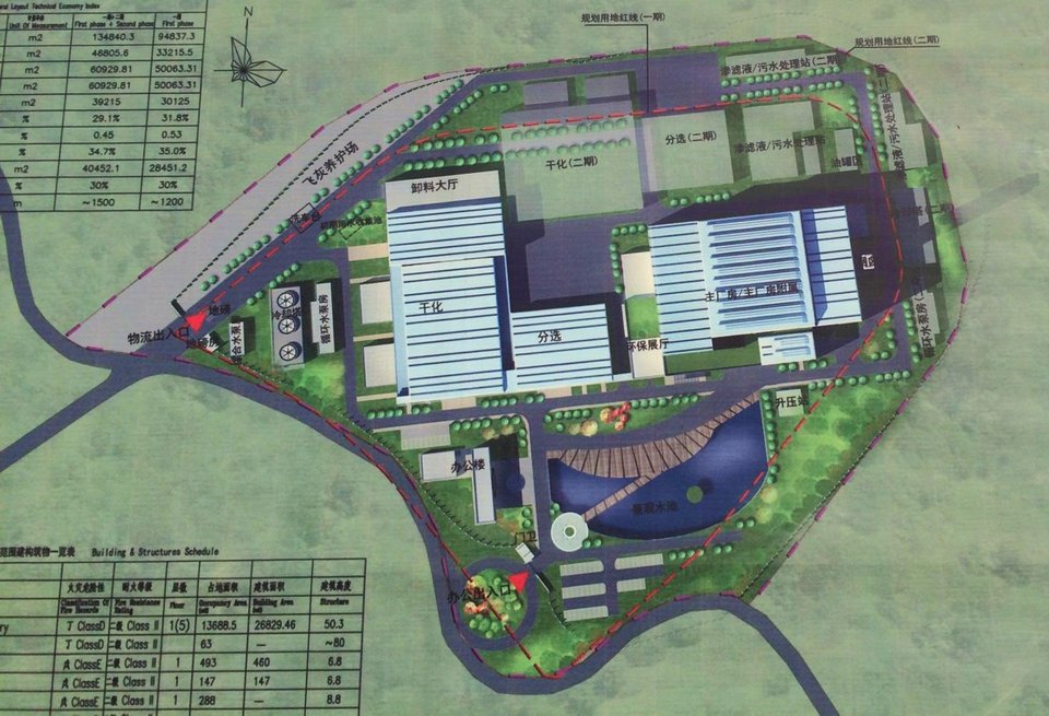 處理工藝:原生垃圾→垃圾池→垃圾破碎→生物干化→機械分選→垃圾燃料→焚燒發(fā)電